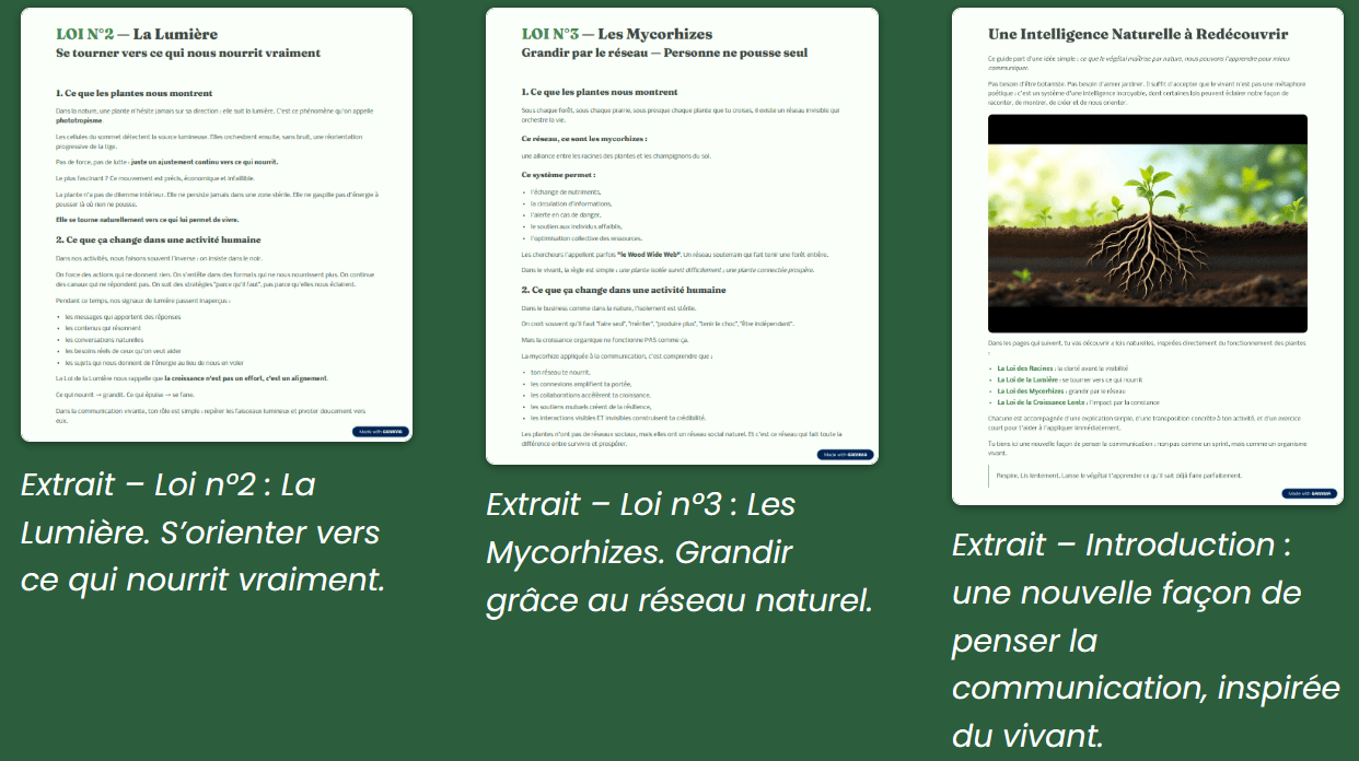 Dans ce guide, tu vas découvrir les 4 principes essentiels, inspirés des plantes, qui font pousser une communication solide, naturelle et durable :